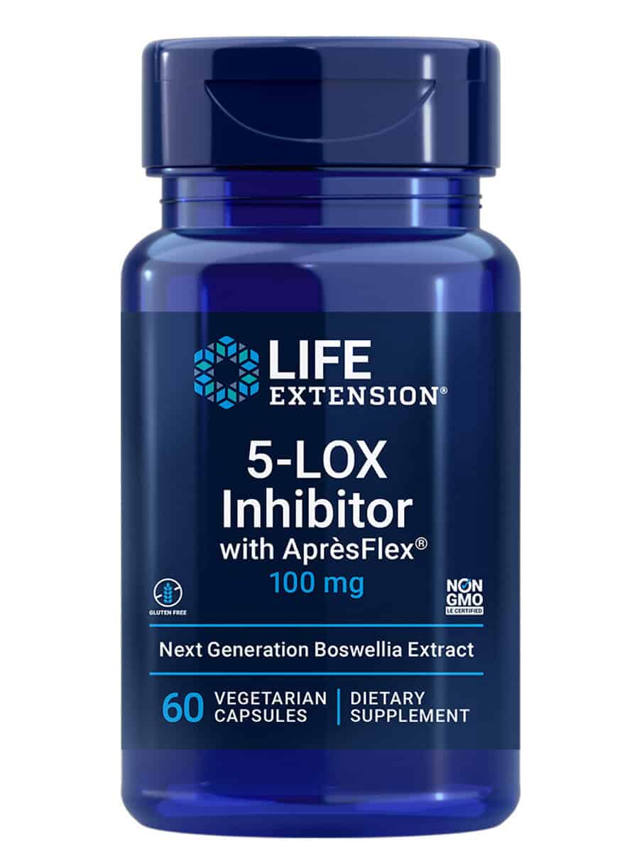 5-LOX Inhibitor with AprèsFlex® delivers a highly absorbable Boswellia serrata extract standardized to 20% AKBA—clinically studied for promoting a healthy inflammatory response. This powerful botanical formula helps maintain joint comfort, arterial flexibility, and optimal cellular function.
