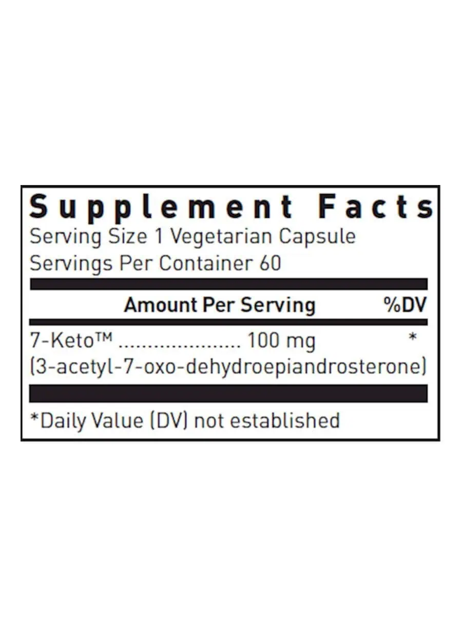 7-Keto — Each capsule provides 100 mg of 3-acetyl-7-oxo dehydroepiandrosterone, a natural, non-steroidal metabolite of DHEA. Unlike DHEA, 7-Keto cannot convert back into DHEA in the body, making it a unique option for those looking to support metabolic activity. Studies suggest that 7-Keto may help activate thermogenic enzymes, potentially aiding in weight management and energy levels.