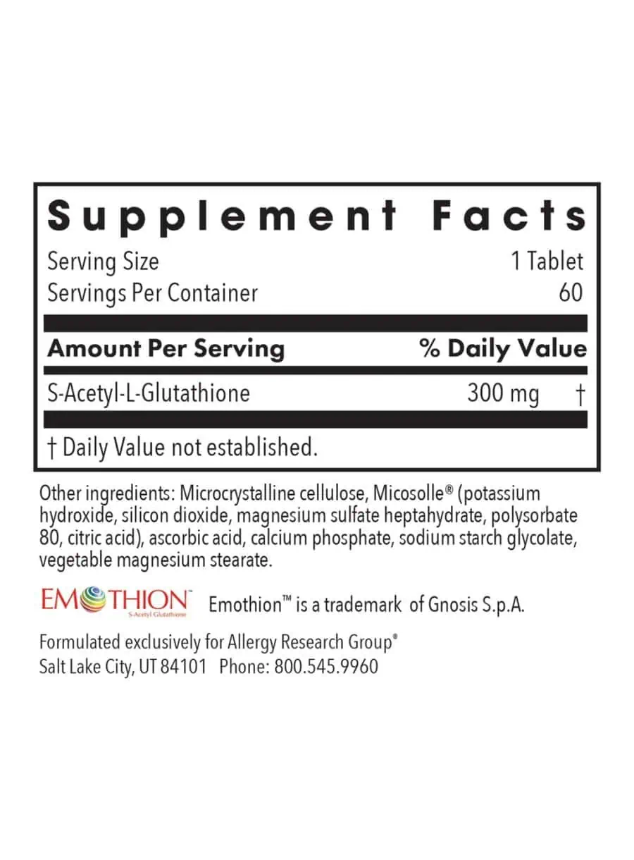 Ideal for individuals seeking advanced antioxidant activity and detoxification support, especially those under stressful conditions. Each tablet delivers 300 mg of S-acetyl-L-glutathione using Emothion®, a premium, high-purity glutathione material.