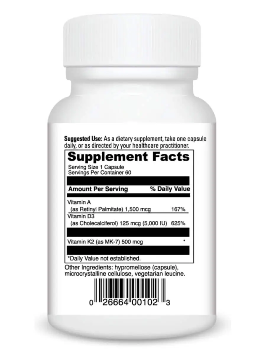 A Dietary Supplement with Vitamins A, D, and K2 (as MK-7).