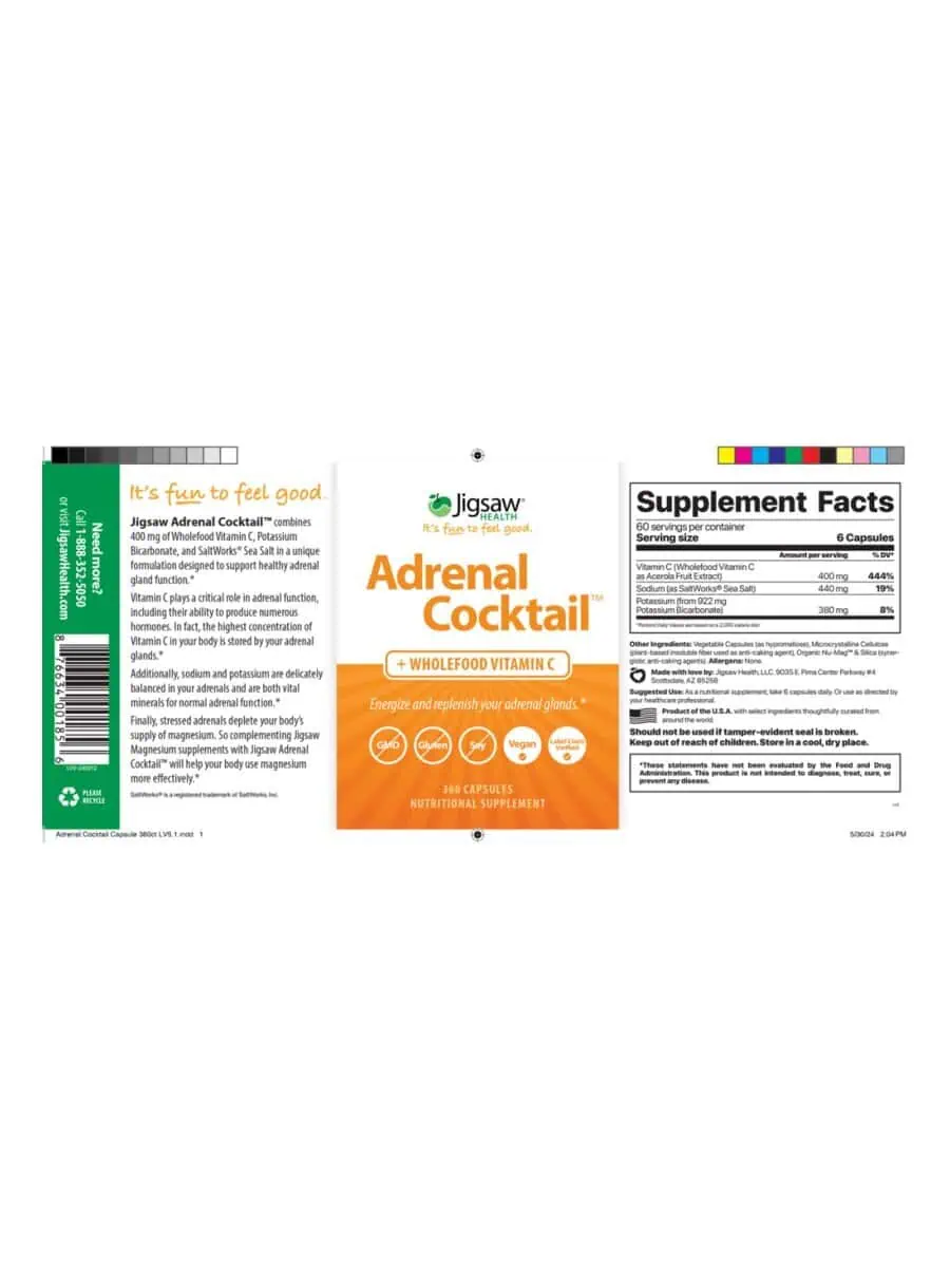 Adrenal Cocktail — This unique formulation combines Whole Food Vitamin C, Potassium Bicarbonate, and Redmond’s Real Salt® to support healthy adrenal gland function. Vitamin C is crucial for adrenal health, as it is stored in high concentrations within the adrenal glands and plays a vital role in hormone production. Additionally, sodium and potassium are essential minerals that work together to maintain normal adrenal function. To further enhance the benefits, pairing Jigsaw Adrenal Cocktail™ with Jigsaw Magnesium supplements can help your body utilize magnesium more effectively, especially when your adrenals are stressed.
