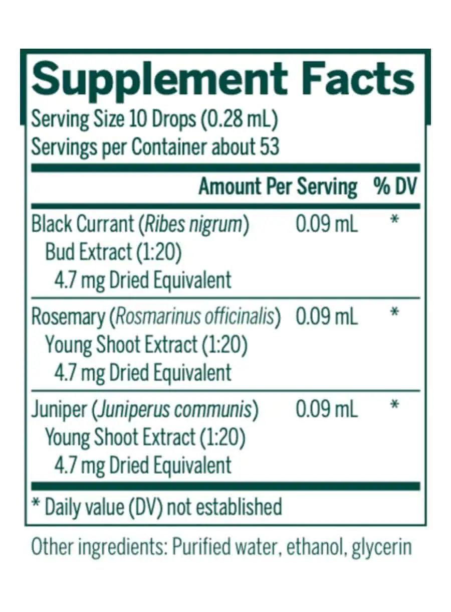 - Contains Black Currant Bud Extract, Rosemary Young Shoot Extract, and Juniper Young Shoot Extract