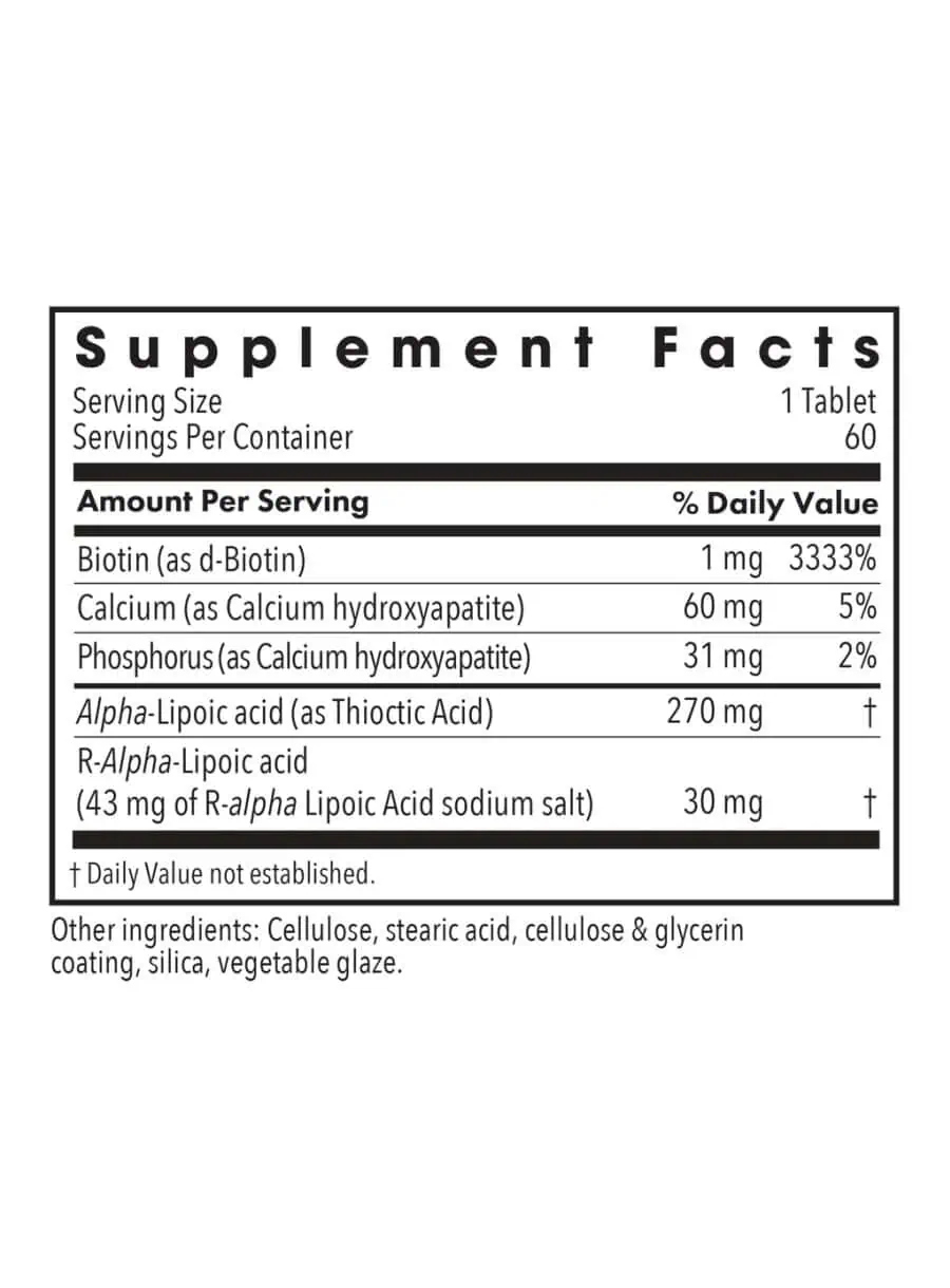 ALA Release is a dietary supplement featuring a complex of alpha-lipoic acid (ALA), a stabilized form of R-alpha-lipoic acid, biotin, and calcium. This formulation is designed to support metabolic health and energy production, making it ideal for individuals looking to enhance their overall wellness.