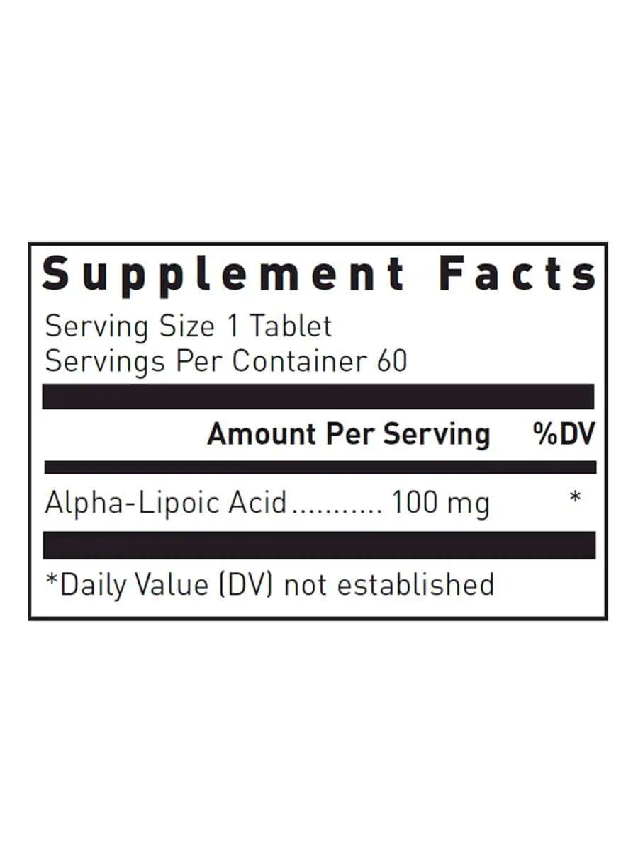 Alpha-Lipoic Acid — This supplement contains 100 mg of pure alpha-lipoic acid, a non-vitamin coenzyme that plays a crucial role in metabolic and antioxidant functions within the body. It is designed for adults seeking to enhance their overall health and well-being.