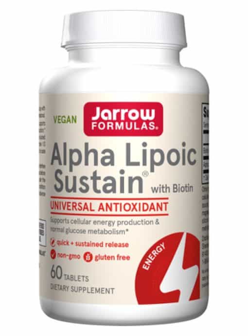 The Sustain™ bilayer tablets are designed to provide 1/3 quick release and 2/3 sustained release of ALA, effectively raising and maintaining blood levels over time. This formulation not only supports antioxidant activity but also aids in the recycling of both fat and water-soluble vitamins, enhancing overall nutrient absorption.