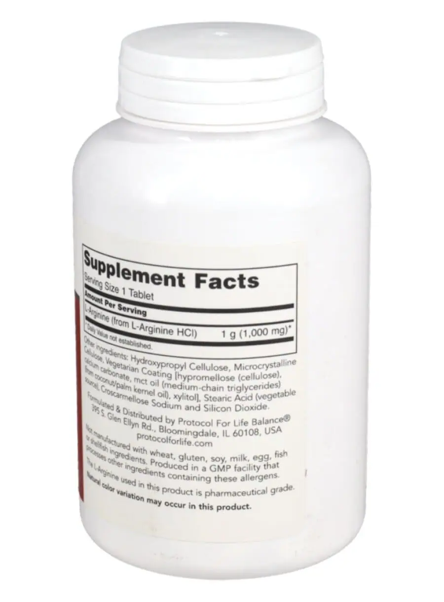 Arginine 1000mg — This conditionally essential amino acid plays a vital role in urea metabolism, DNA synthesis, and protein production. As a precursor to nitric oxide (NO), it contributes to the dilation of blood vessels, promoting healthy circulation and cardiovascular function.