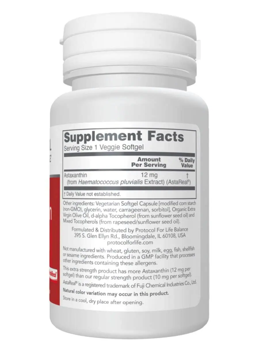 Astaxanthin 12mg is a powerful antioxidant derived from non-GMO Haematococcus pluvialis microalgae. This unique carotenoid is known for its ability to stabilize cellular and mitochondrial membranes, providing protection against free radicals that can damage cells. Ideal for those seeking to enhance their overall health, this supplement supports cellular integrity and promotes wellness.