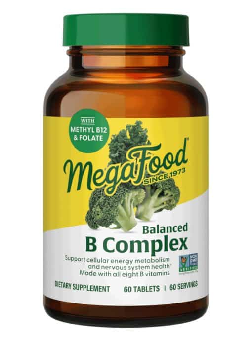 Balanced B Complex — Want more pep in your step? MegaFood® Balanced B Complex supports your nervous system and assists in the conversion of food into energy with its balanced ratio of FoodState® B complex vitamins and nourishing whole foods from our family farm partners, like organic kale from Foxy Organic and brown rice from Lundberg Family Farms. This supplement can be taken anytime throughout the day, even on an empty stomach, making it a convenient choice for those looking to enhance their energy levels and overall well-being.