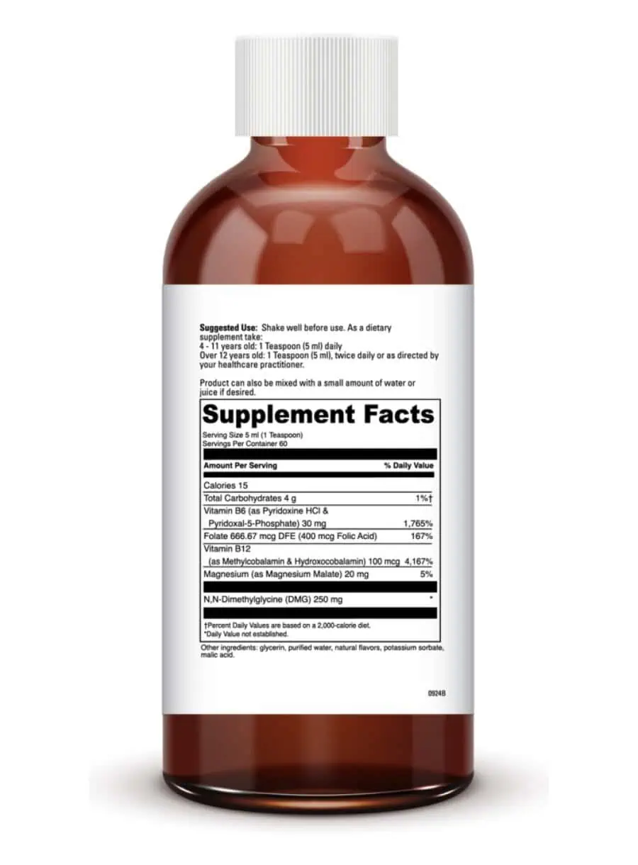 This liquid supplement features a blend of essential vitamins and minerals that work together to promote overall well-being and behavioral health.