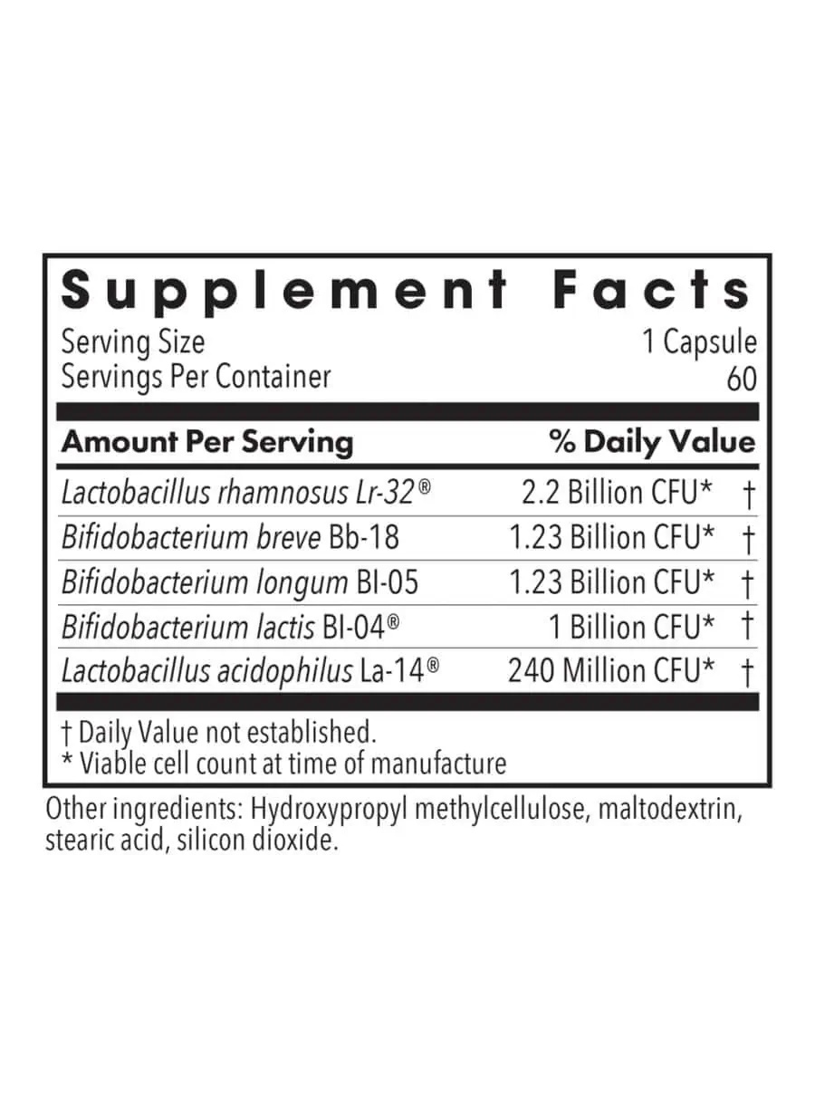 Bifido Biotics — This supplement features five strains of friendly bacteria designed to provide broad-range support for intestinal microbial balance, particularly in the small and large intestines. It supports the structure and functional integrity of the gut epithelial lining, may enhance immune response, and aids in the production of vitamins, enzymes, and organic acids while maintaining normal intestinal pH.