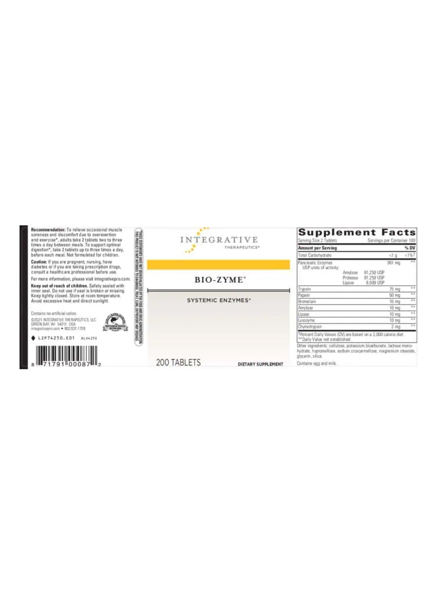 Bio-Zyme is a high-potency pancreatic enzyme complex formulated to support healthy digestion of fats, carbohydrates, and proteins.† While other pancreatin products are often diluted with salt or lactose, Bio-Zyme contains a full-strength pancreatic extract for optimum digestive support.† Taken just before or with a meal, Bio-Zyme helps reduce gas, bloating and fullness after eating.† Taken between meals, the clinically studied formula helps relieve occasional muscle pain due to exercise and overuse.†