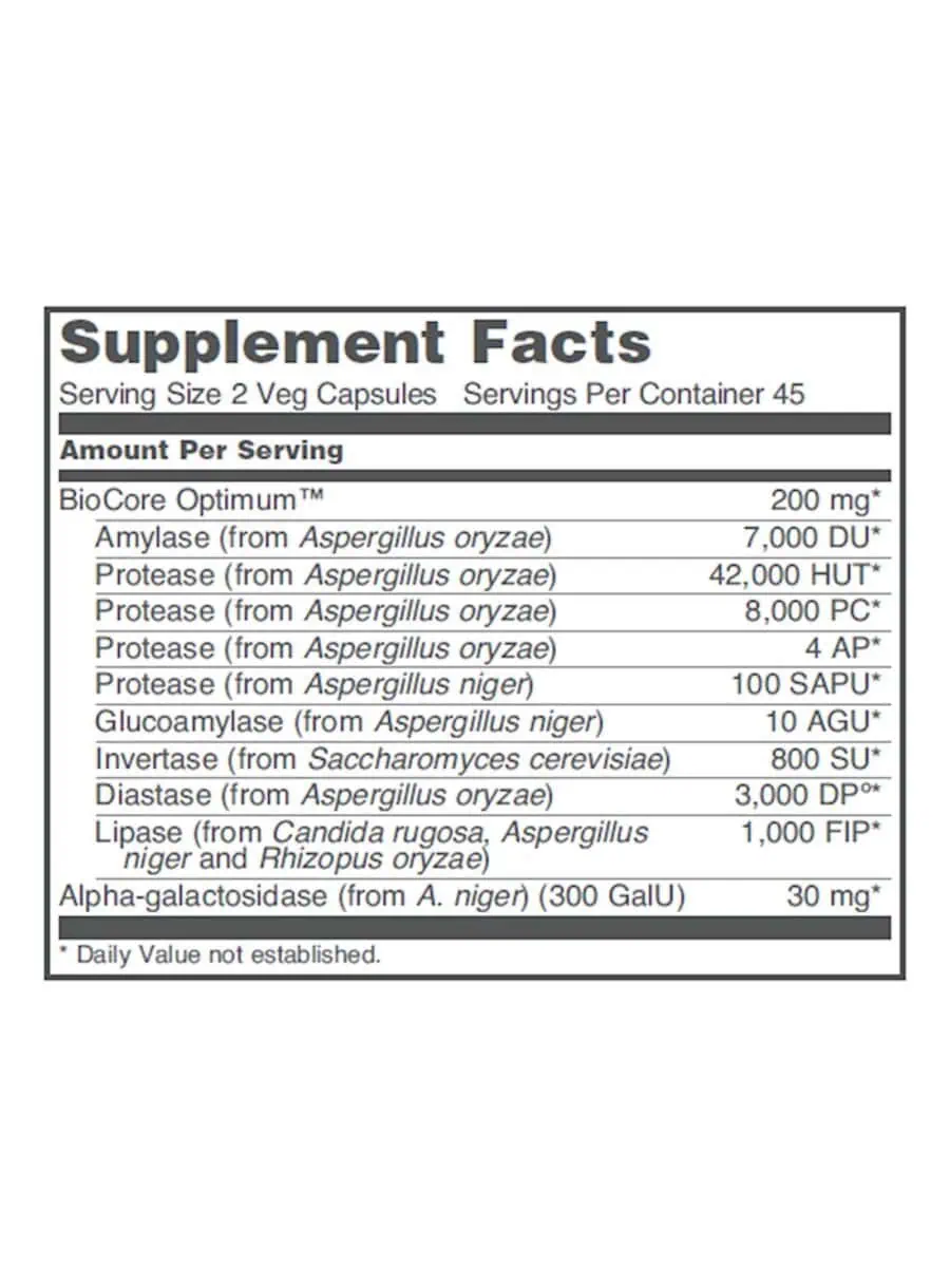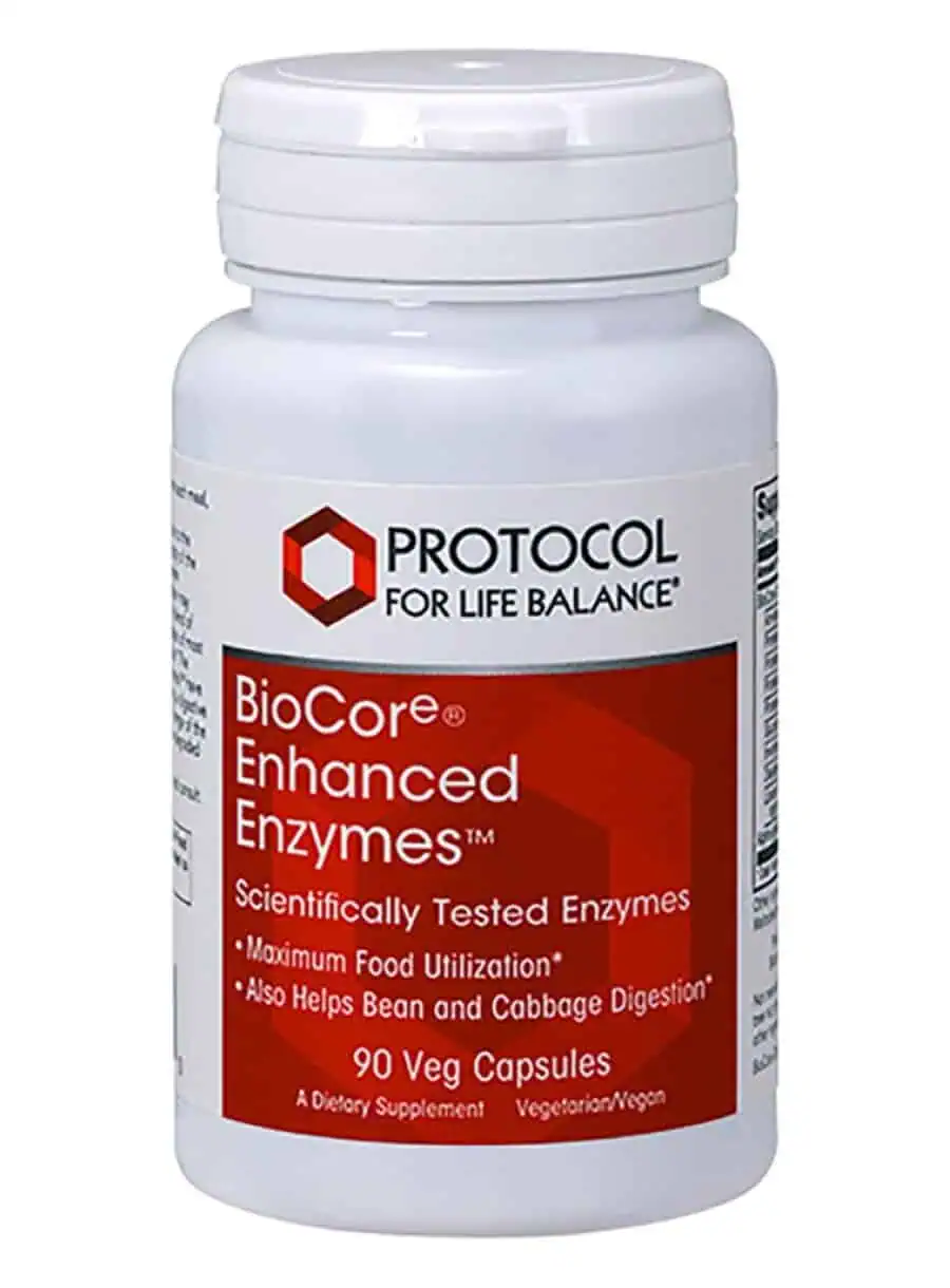 BioCore Enhanced Enzymes — Digestive enzymes are essential for the body’s absorption and full use of food. As we age, the body’s ability to produce enzymes diminishes, leading to decreased digestive efficiency. BioCore® Enhanced Enzymes™ contains a blend of Non-GMO fungal-derived enzymes that aid in the digestion of various foods, including beans and cruciferous vegetables. The vegetarian enzymes in BioCore® Enhanced Enzymes™ have been proven effective throughout the entire pH range of the digestive system and are not degraded by stomach acid.