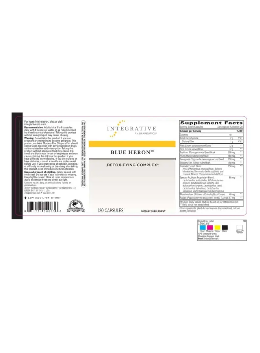 Blue Heron is a combination of all-natural fibers and herbs that promote healthy elimination, and absorb and eliminate toxins, thereby improving colon health.† The balanced blend of dietary fiber, nutritional herbs, and probiotic microflora found in Blue Heron was formulated for convenient, effective and gentle intestinal support.† Blue Heron also includes an Ayurvedic combination of amla fruit, belleric myrobalan fruit, and chebulic myrobalan fruit, known as Triphala, to promote optimal digestive function.†