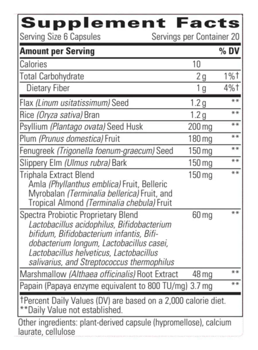 Psyllium : Psyllium is a superior detoxification and laxation fiber. A rich source of concentrated soluble fiber, psyllium has been shown to absorb up to 14 times its weight in water and has more reabsorption ability than any other bowel-supporting fiber.†7 Psyllium husk supports healthy intestinal lubrication for ease in elimination.†8,9