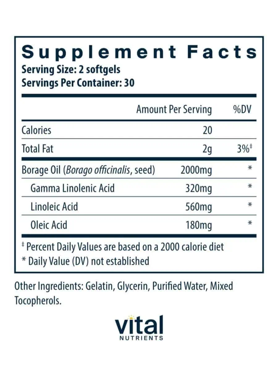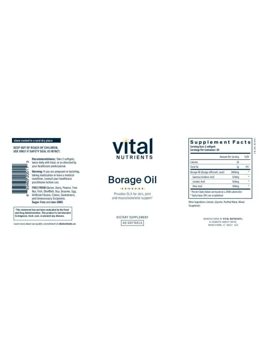 Borage Oil is rich in GLA, which plays a crucial role in metabolism and supports various bodily functions, including smooth muscle dilation and nerve health.