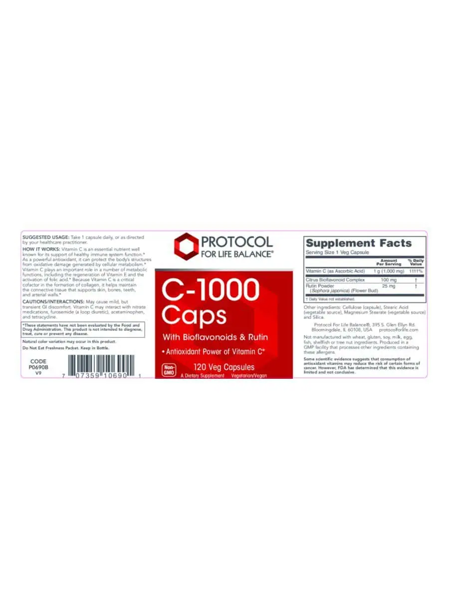 C-1000 — This powerful Vitamin C supplement is designed to support a healthy immune system and provide antioxidant protection against oxidative stress. Each capsule delivers a potent dose of Vitamin C, along with a Citrus Bioflavonoid Complex and Rutin Powder, to enhance its effectiveness. Ideal for anyone looking to boost their overall health and well-being.