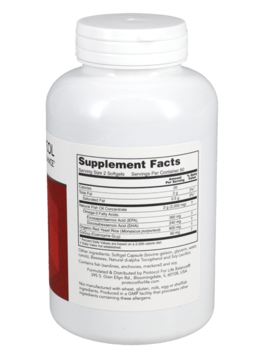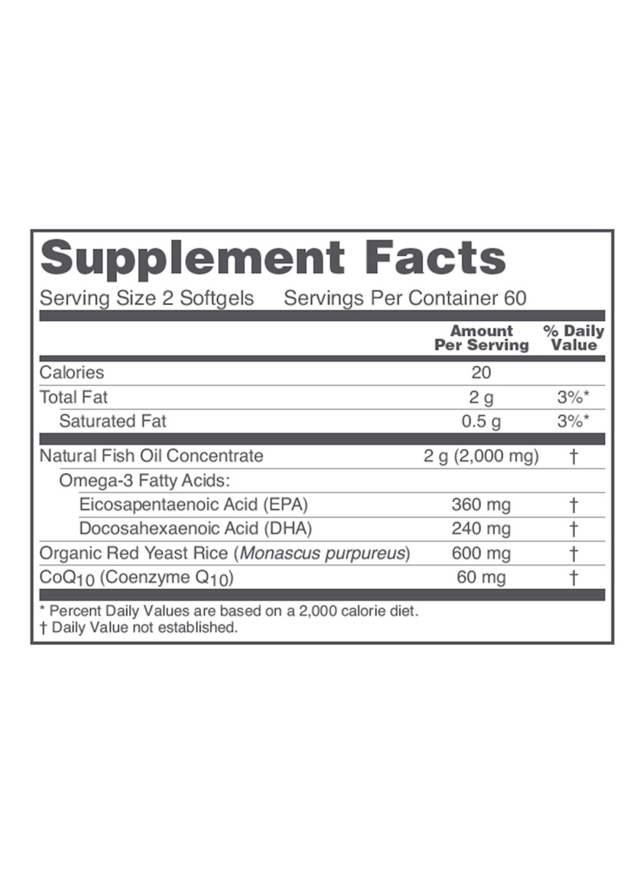 This formula features a blend of omega-3 fatty acids, which are essential for maintaining heart health, along with Red Yeast Rice and CoQ10, both known for their beneficial effects on cardiovascular function.