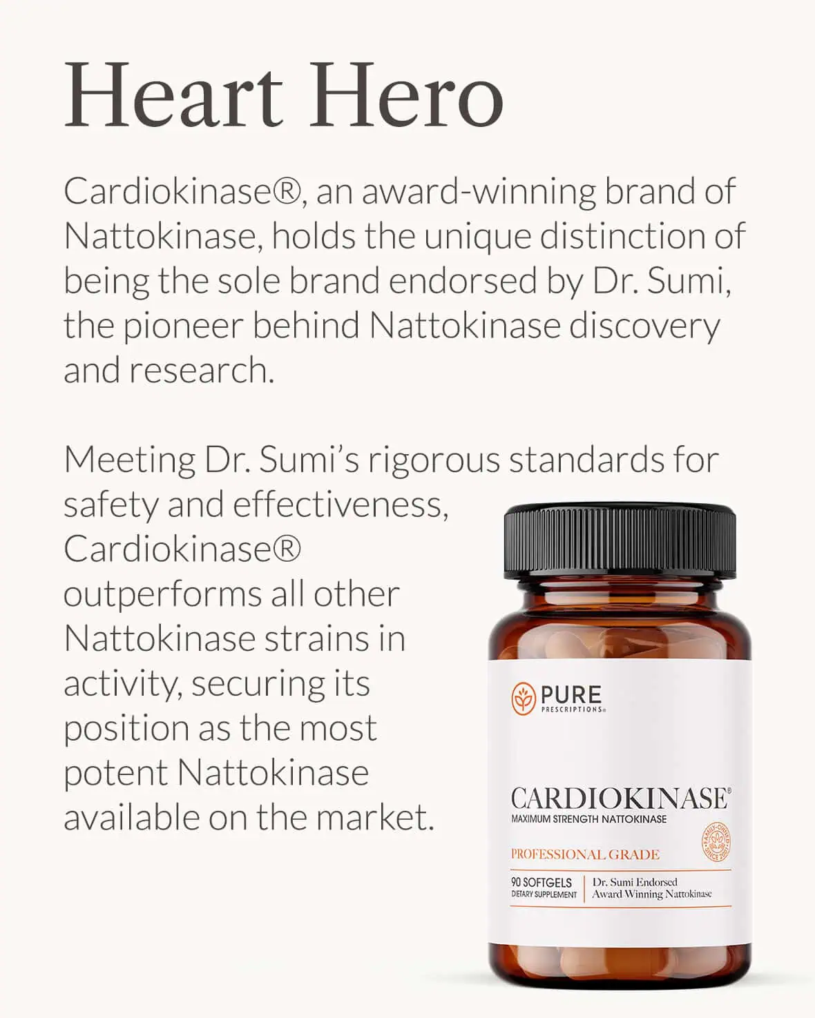 Cardiokinase®, an award-winning brand of Nattokinase, holds the unique distinction of being the sole brand endorsed by Dr. Sumi, the pioneer behind Nattokinase discovery and research. Meeting Dr. Sumi’s rigorous standards for safety and effectiveness, Cardiokinase® outperforms all other Nattokinase strains in activity, securing its position as the most potent Nattokinase available on the market.