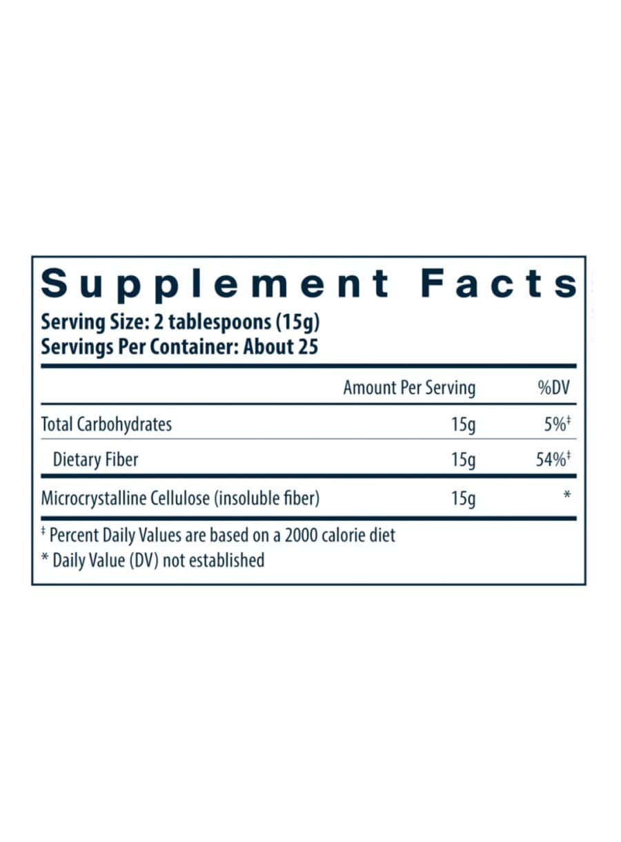Cellulose Fiber — A source of insoluble fiber used to increase stool bulk and support the normal passage of daily bowel movements. Insoluble fiber helps to dilute toxins in the colon and can aid in the elimination of toxins from the colon.