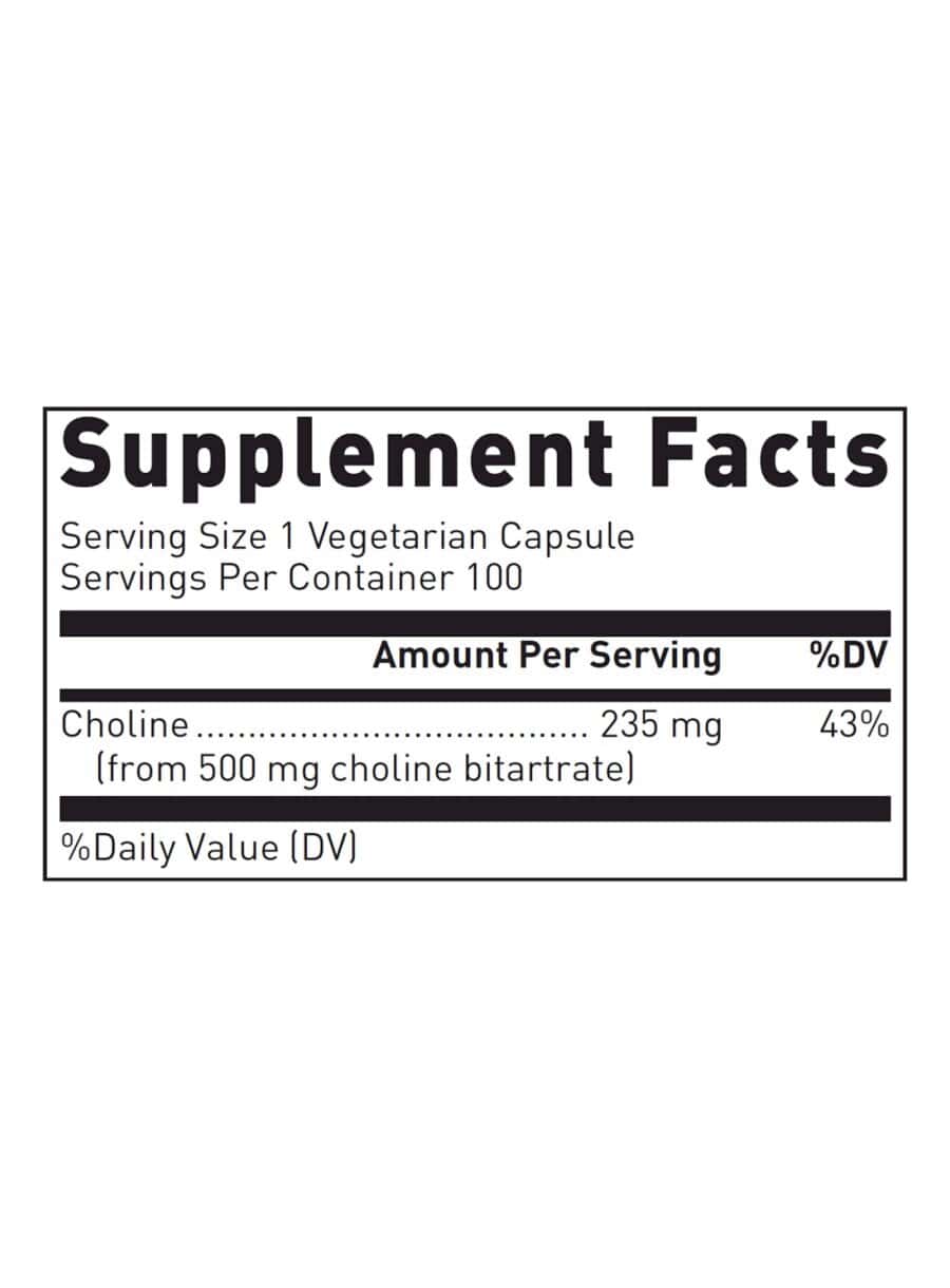 | Choline (from 500 mg Choline Bitartrate) | 235 mg | - |