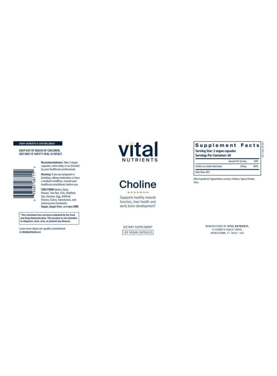 Choline is an essential nutrient that supports early brain development during pregnancy, memory, mood, and muscle control health. This premium vegan formulation provides the necessary methyl groups for various metabolic functions, including liver health and normal muscle function. Choline is crucial for the production of phospholipids, which maintain cell membrane integrity and nerve myelination. Despite some production in the liver, most individuals do not meet their choline requirements through diet alone, making supplementation important, especially for pregnant women and vegetarians.