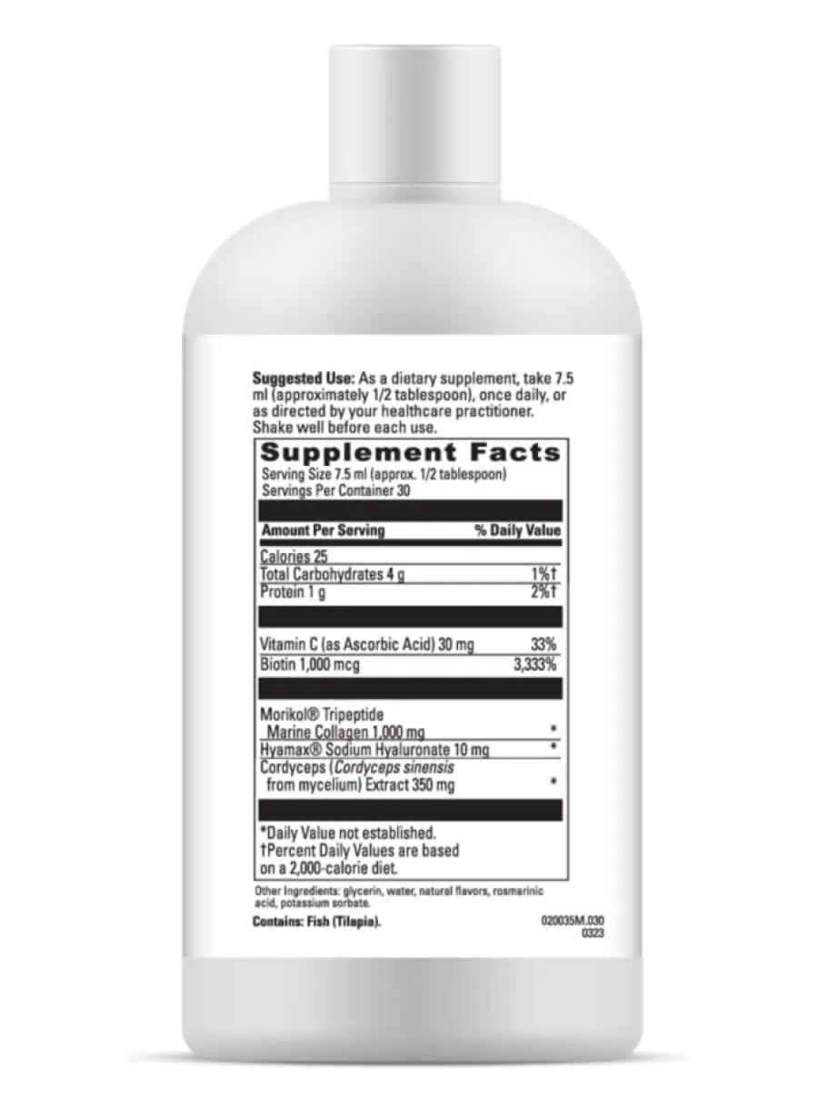 This supplement features a blend of marine collagen, hyaluronic acid, and biotin, which work synergistically to enhance skin health and appearance.