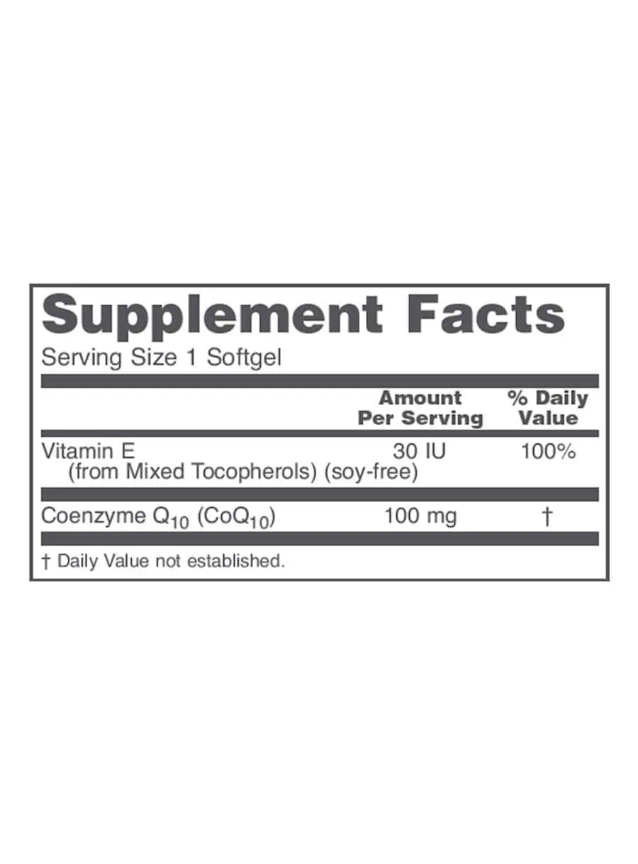 CoQ10 100mg — Coenzyme Q10 (CoQ10) is a vitamin-like compound essential for cellular energy production, particularly in the heart where energy availability is crucial. This powerful fat-soluble antioxidant also helps protect cell membranes and vascular structures from free radicals, promoting overall cardiovascular health.