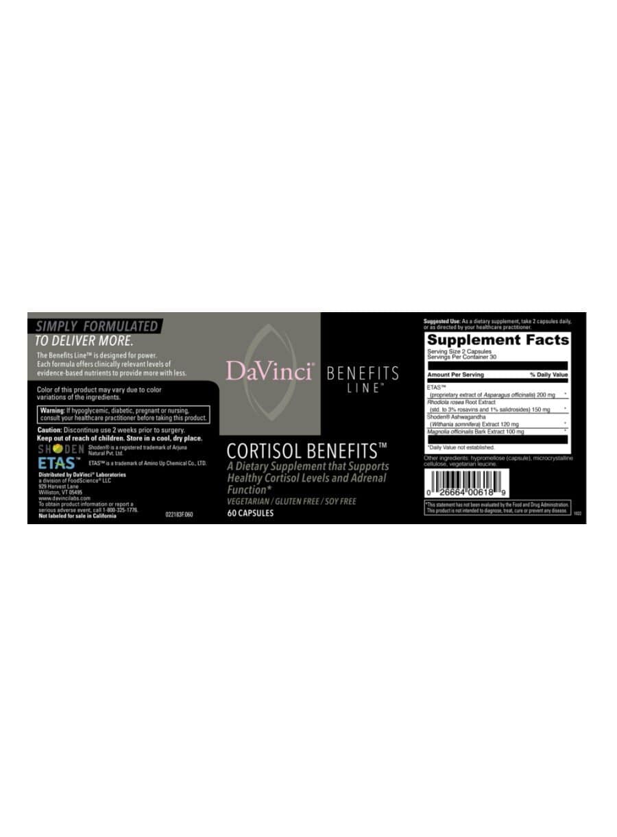 Cortisol Benefits — Supporting healthy cortisol levels is essential for adrenal function. This supplement combines powerful adaptogens like Sensoril® Ashwagandha and ETAS™, a standardized extract of Asparagus officinalis, to promote overall health, stress management, and HPA Axis/adrenal hormone balance. With clinically relevant levels of these compounds, it is designed to help maintain cortisol balance effectively.