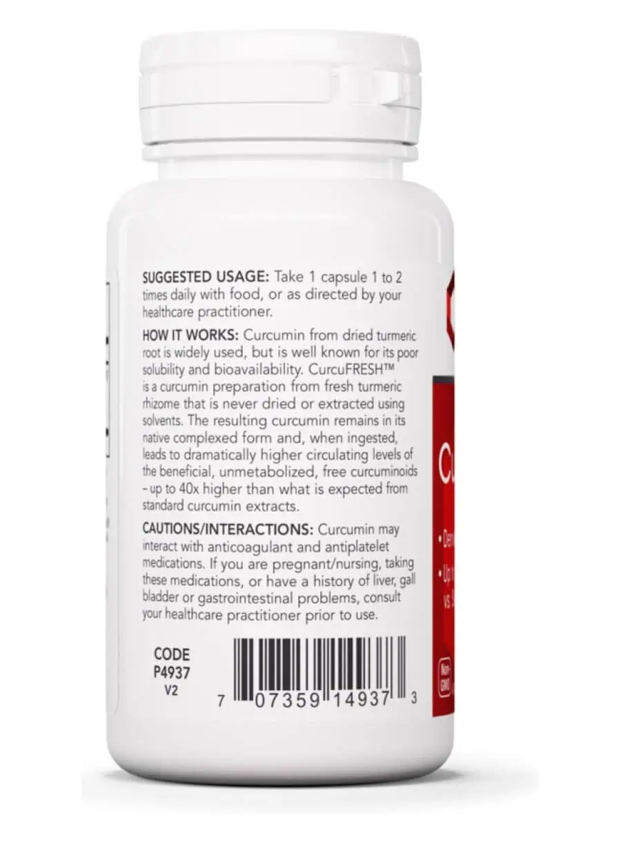 CurcuFRESH 500mg — This innovative curcumin preparation utilizes fresh turmeric rhizome, ensuring that the curcumin remains in its native complexed form. Unlike traditional curcumin extracts, which are often dried and less bioavailable, CurcuFRESH offers dramatically higher circulating levels of beneficial curcuminoids—up to 40 times more than standard extracts. This makes it an excellent choice for those seeking enhanced absorption and effectiveness.