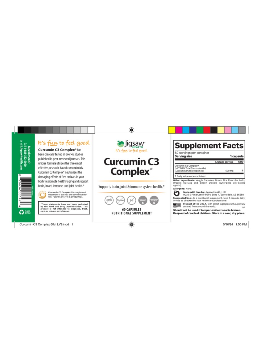 Curcumin C3 Complex contains a blend of curcuminoids derived from Curcuma longa, known for their antioxidant properties and ability to support overall health.