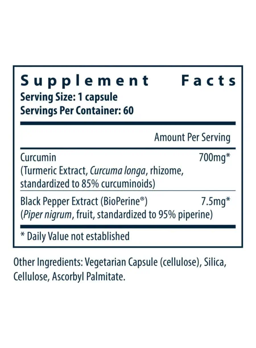 Curcumin Extract 700mg (with Bioperine®) is a potent antioxidant that helps deplete substance P and maintain healthy platelet aggregation levels already within the normal range. This supplement supports arachidonic acid metabolism and features the addition of piperine, which significantly increases the bioavailability of curcumin by 2,000%. Ideal for those seeking to enhance their overall health and wellness.