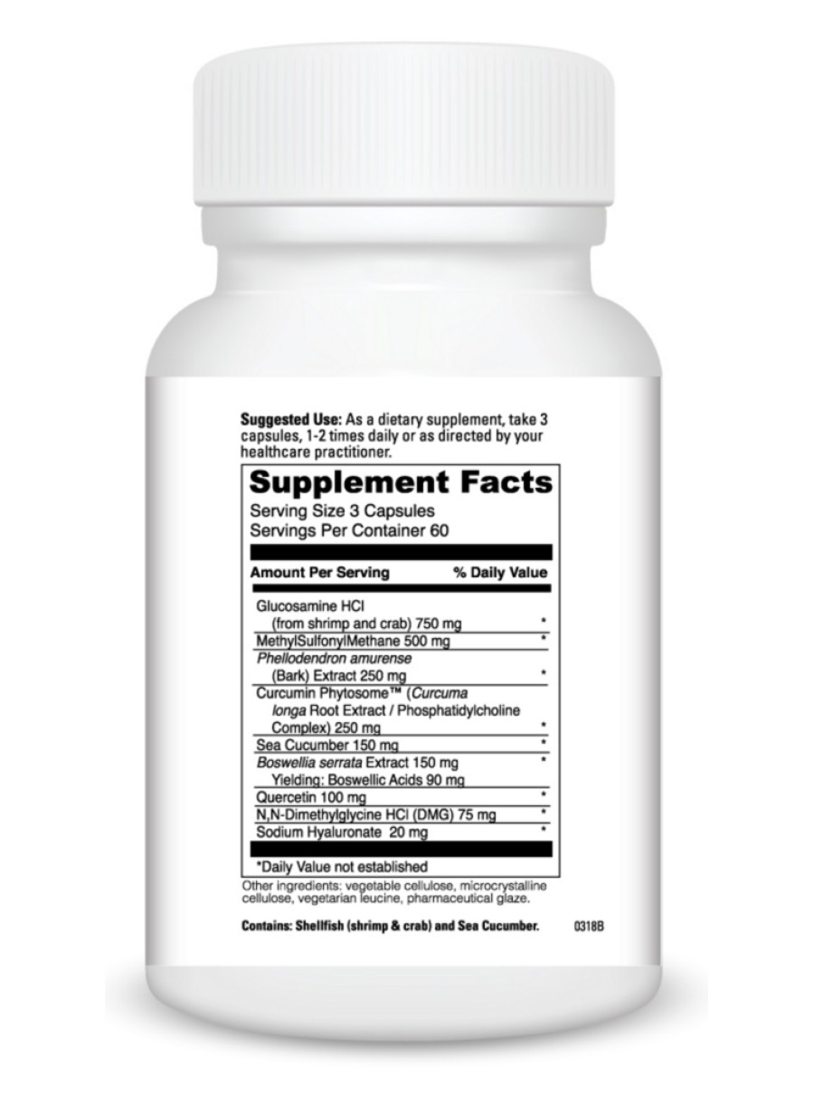 The formula features glucosamine for joint support, MSM for inflammation reduction, and curcumin for its antioxidant properties, working together to enhance joint health and function.
