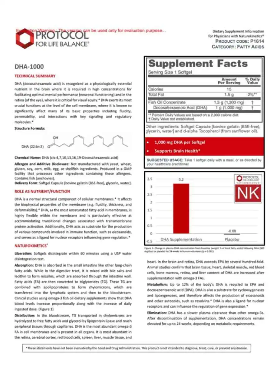 DHA-1000 — DHA (docosahexaenoic acid) is a vital nutrient for optimal brain function and visual acuity, found in high concentrations in the brain and retina. This supplement provides 1,000 mg of DHA per softgel, doubling the amount found in DHA-500, making it an excellent choice for those seeking enhanced mental performance and eye health.