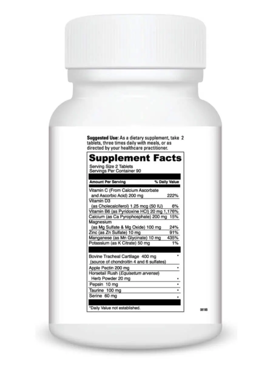 This supplement combines bovine tracheal cartilage, which is a source of chondroitin sulfates, with essential vitamins and minerals to support the health of spinal discs and connective tissues.