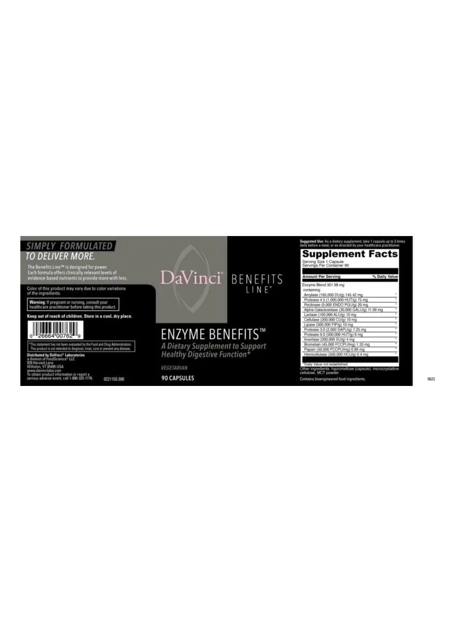 Enzyme Benefits — This comprehensive enzyme formula is designed to support digestive health by facilitating the breakdown, absorption, and assimilation of nutrients. Enzymes are essential for catalyzing biochemical processes in the body, and this product provides a broad range of enzymes at clinically significant levels. Ideal for individuals experiencing altered digestive function, it helps restore balance and improve nutrient utilization.