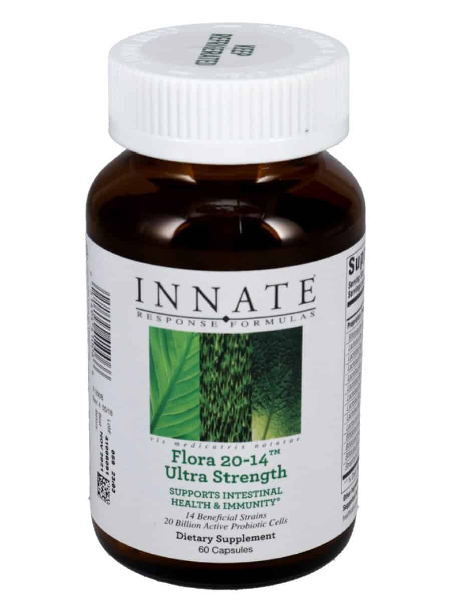 Flora 20-14™ Ultra Strength is a powerful probiotic supplement designed to support intestinal health and immunity. Each capsule contains 20 billion active probiotic cells from 14 unique strains, including acid-resistant varieties. This formulation helps restore and maintain a healthy balance of probiotics in the gut, making it an excellent choice for anyone looking to enhance their digestive health as part of a foundational health program.