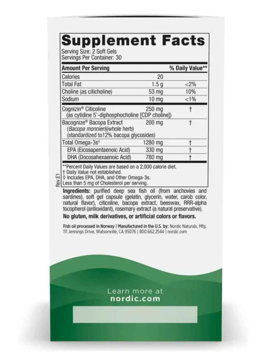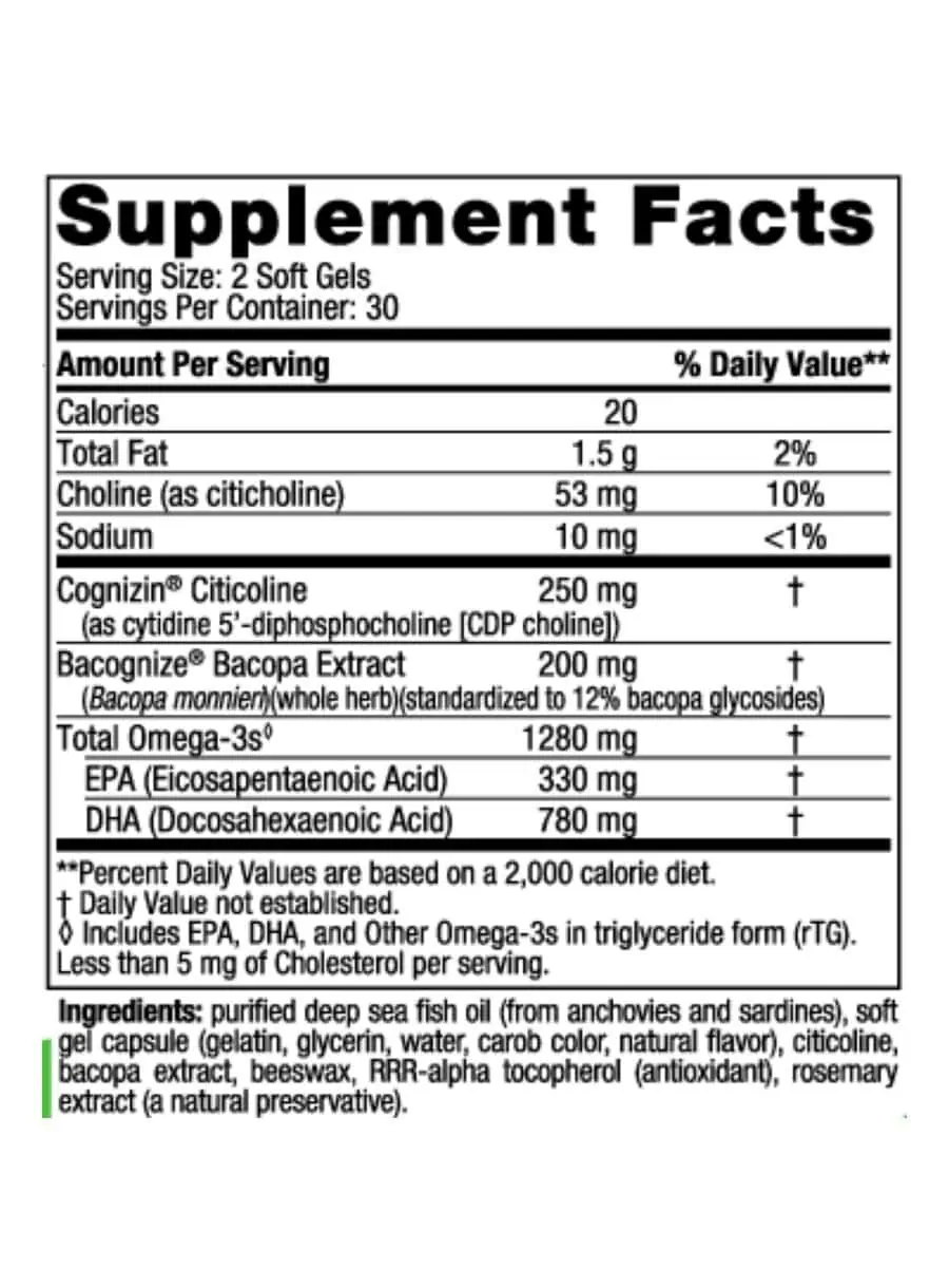 The combination of omega-3 fatty acids, citicoline, and Bacopa monnieri extract works synergistically to enhance brain function, improve focus, and support overall cognitive health.