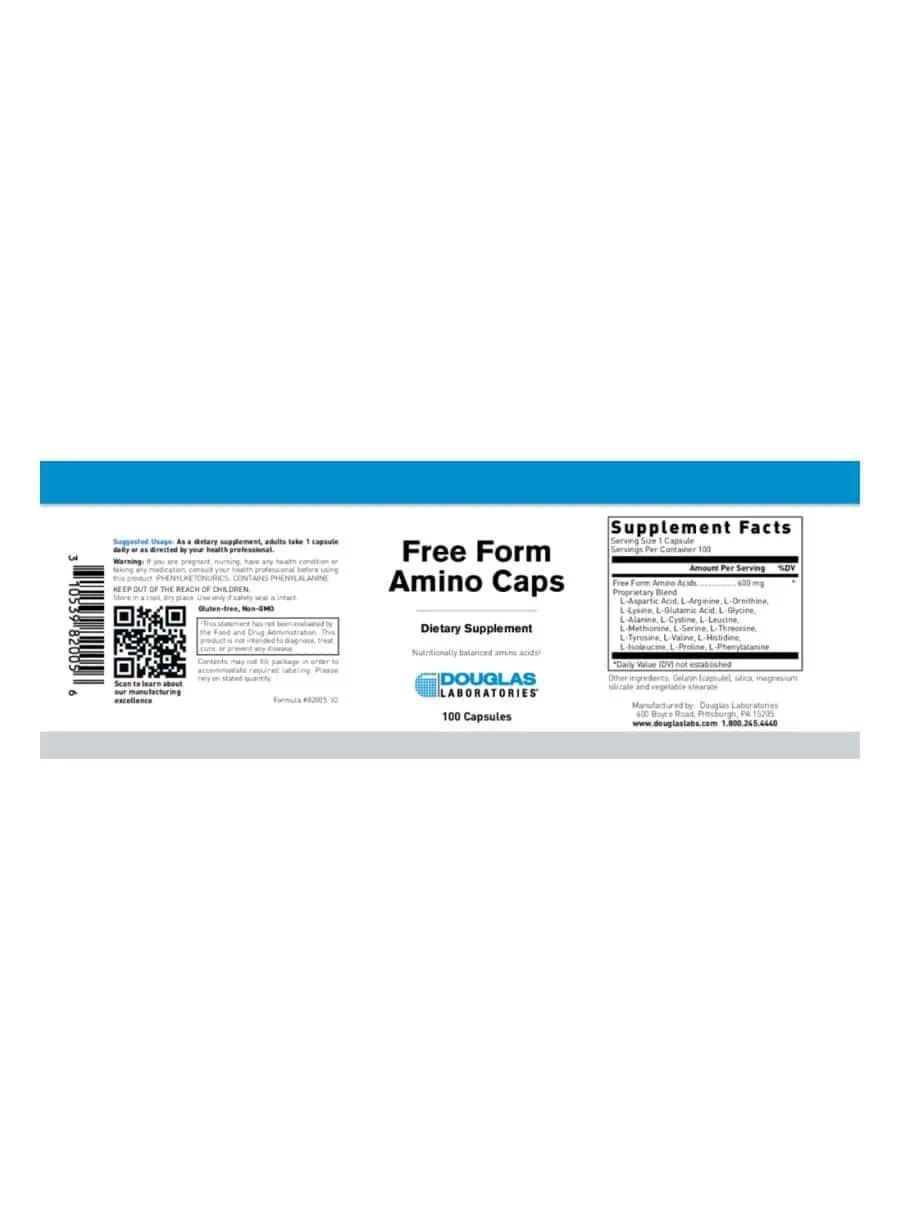 FREE FORM AMINO CAPS by Douglas Laboratories is a carefully formulated blend of L-crystalline amino acids designed to support overall health and wellness. This supplement provides a balanced spectrum of essential, conditionally essential, and non-essential amino acids, which are vital for various physiological functions. Amino acids are the building blocks of proteins, crucial for muscle growth, tissue repair, and the production of enzymes and hormones. By incorporating FREE FORM AMINO CAPS into your daily routine, you can help ensure your body receives the necessary nutrients to maintain optimal performance and recovery.