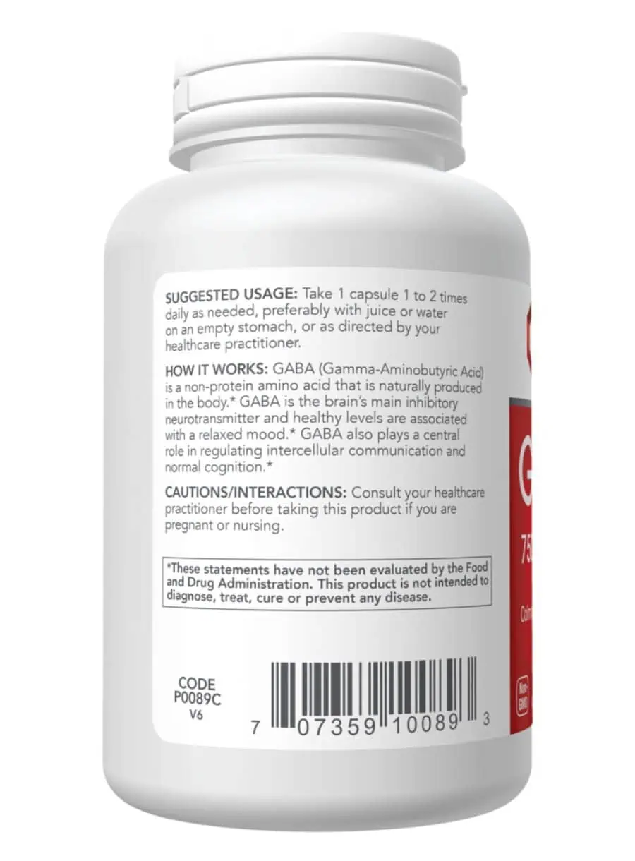 GABA 750mg — GABA (Gamma-Aminobutyric Acid) is a non-protein amino acid that is naturally produced in the body. It serves as the brain’s main inhibitory neurotransmitter, promoting a relaxed mood and supporting normal cognition. Healthy levels of GABA are essential for regulating intercellular communication, making it a vital component for mental well-being.
