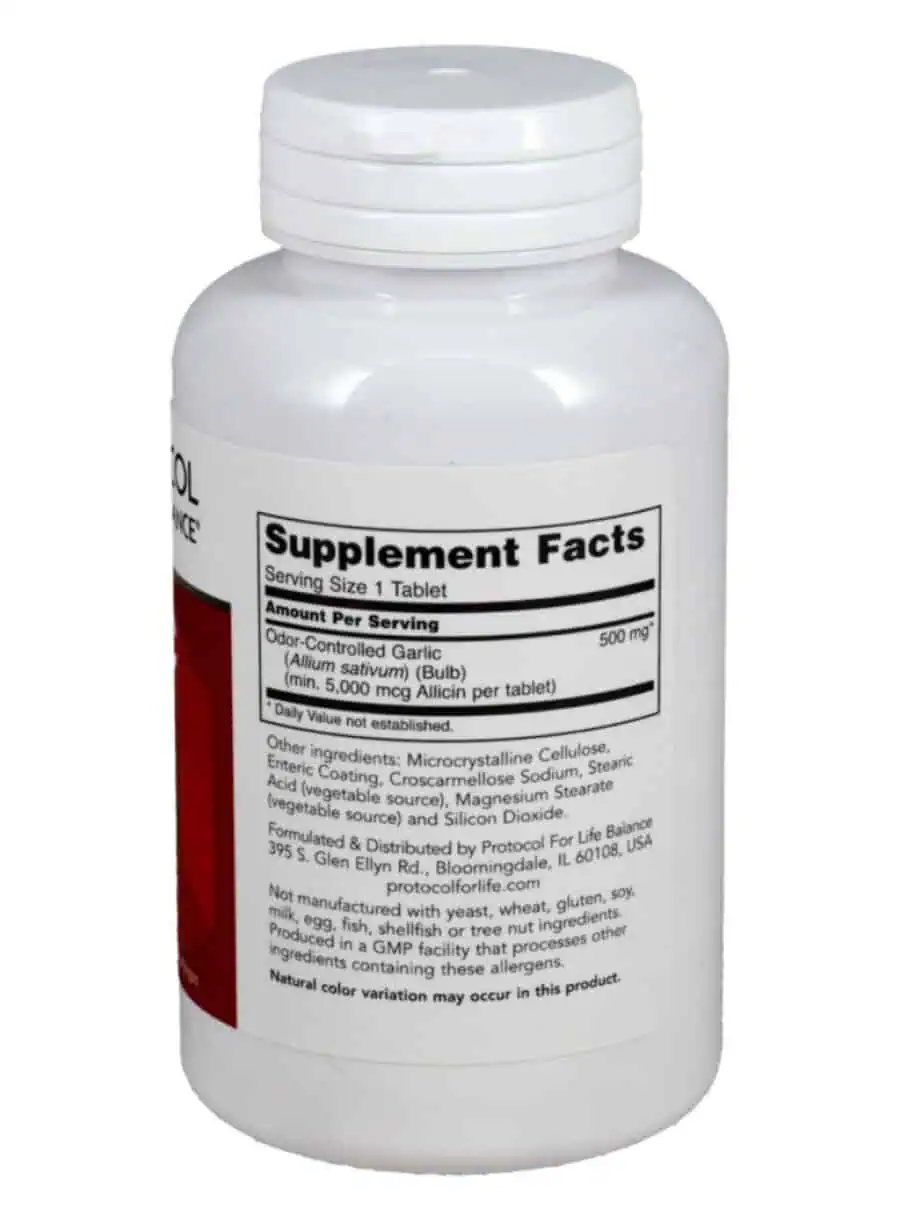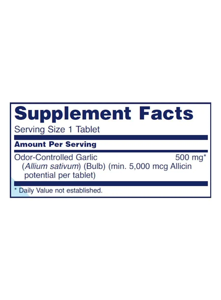 Garlic 5000 is standardized to yield allicin precursors, which convert to allicin when ingested. It is enteric coated so that this conversion occurs in the upper intestine for optimal absorption, as well as to contain the release of garlic’s pungent odor. The allicin potential of this product is achieved through a special process that keeps Garlic’s moisture low while preserving all of the natural goodness of whole fresh garlic. Enjoy the benefits of this odor-controlled garlic tablet!