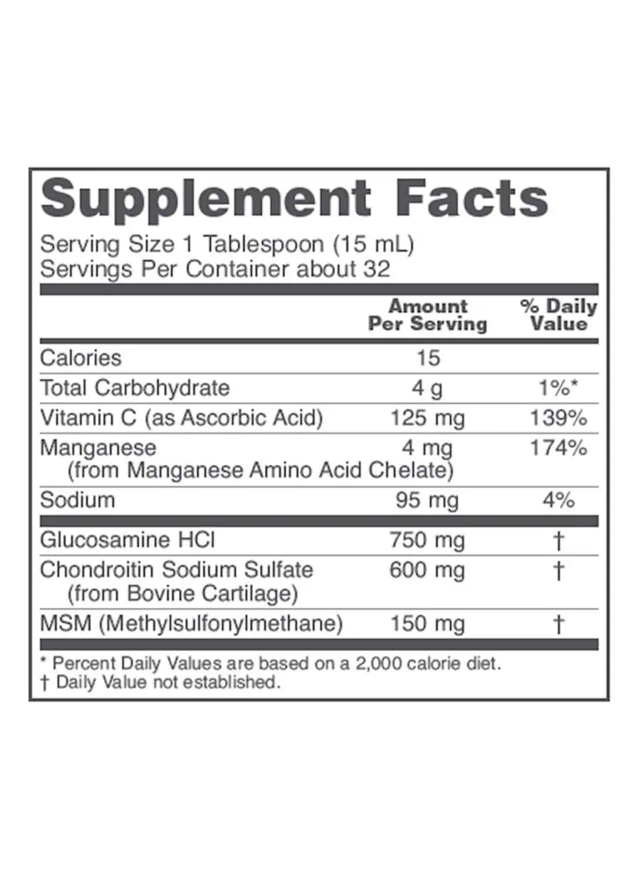 This liquid formula features Glucosamine HCl and Chondroitin Sodium Sulfate, which are essential for joint health, along with MSM, a naturally occurring sulfur compound that supports joint tissue integrity.