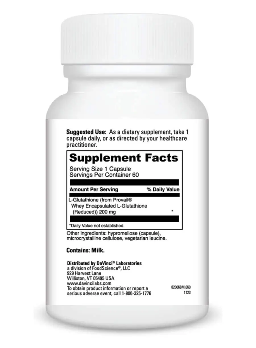 The primary ingredient, L-Glutathione, is encapsulated in a whey protein matrix, which helps to shield it from degradation in the digestive system, allowing for better bioavailability and effectiveness.