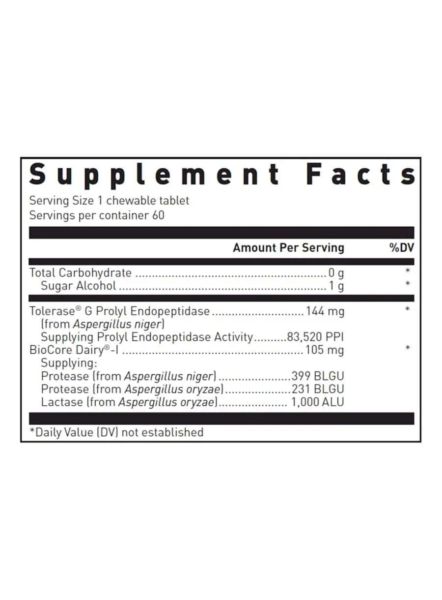 Tolerase® G is a proline-specific endoprotease that effectively aids in the digestion of residual gluten, while BioCore Dairy® provides a blend of proteases and lactase to assist in lactose breakdown.