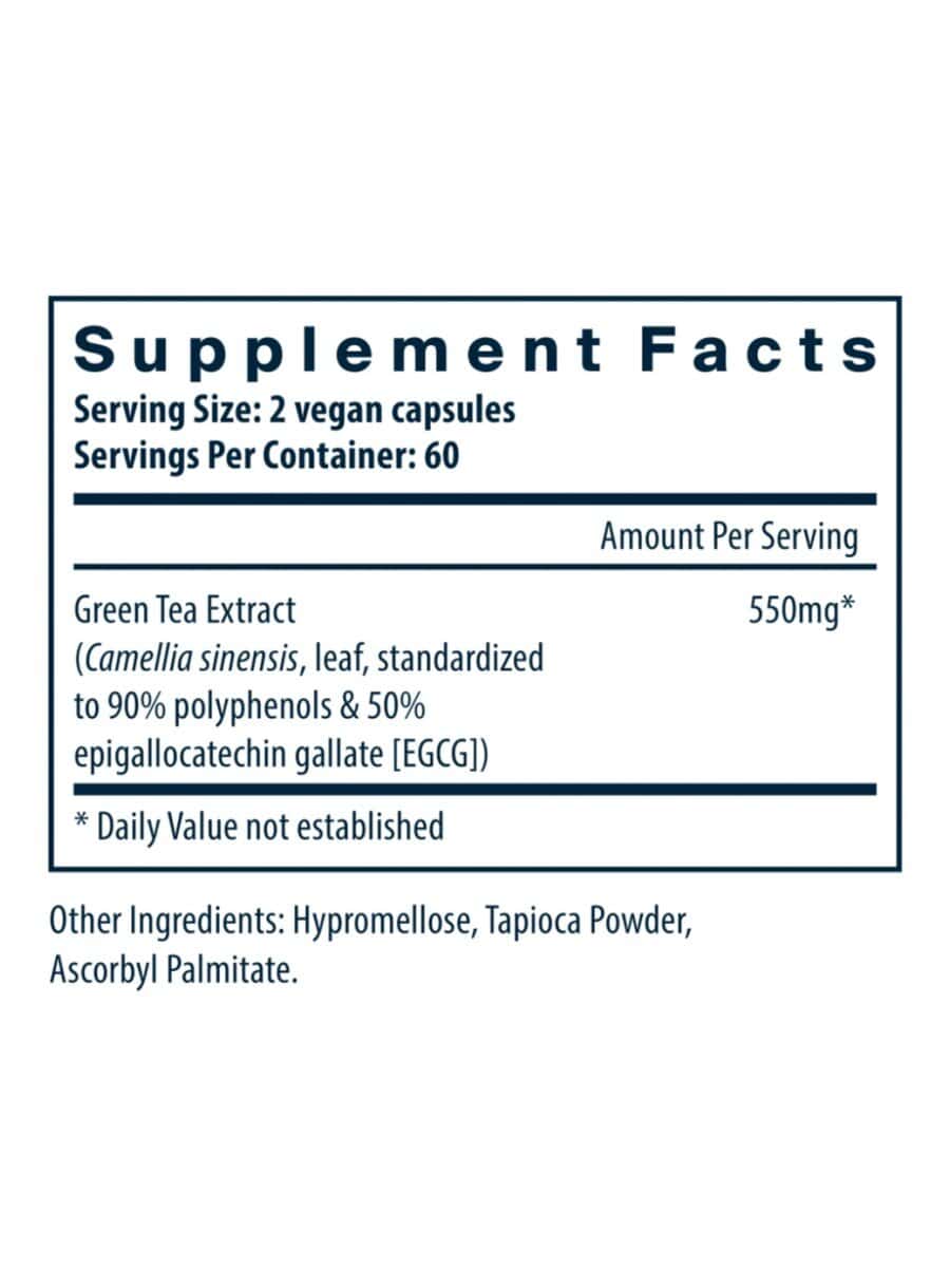 The Green Tea Extract contains standardized polyphenols and EGCG, which are known for their antioxidant properties and support for overall health.