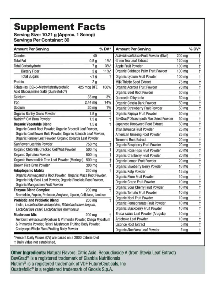 This blend includes a variety of organic superfoods, probiotics, and digestive enzymes that work synergistically to enhance nutrient absorption and support gut health.