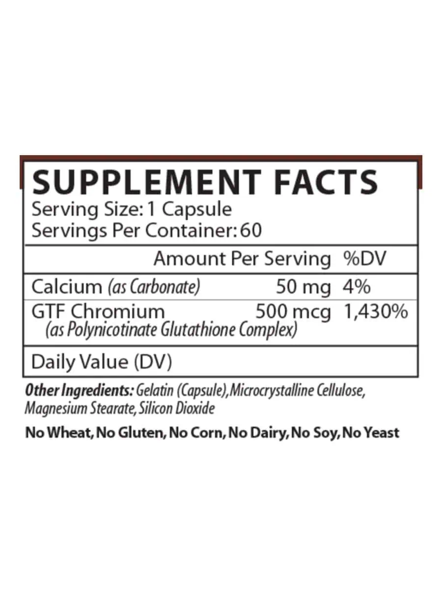 The combination of Chromium Polynicotinate and Glutathionate in GTF Chromacin enhances the body’s ability to utilize glucose effectively, contributing to better energy levels and metabolic health.