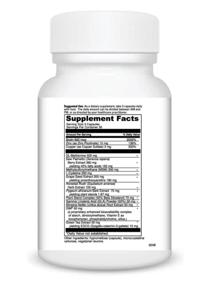This formula includes Biotin, Zinc, and a blend of herbal extracts and amino acids that work synergistically to promote healthy hair growth and repair.
