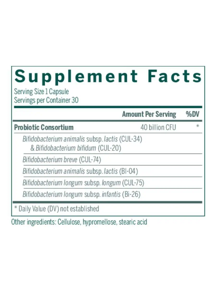 HMF Bifido Capsules — This advanced probiotic formula features a six-strain Bifidobacteria combination, providing 40 billion CFU per dose in a convenient once-daily capsule format. Designed to support gastrointestinal health, abdominal comfort, and a balanced microflora, these capsules include proprietary, research-driven strains for optimal effectiveness.