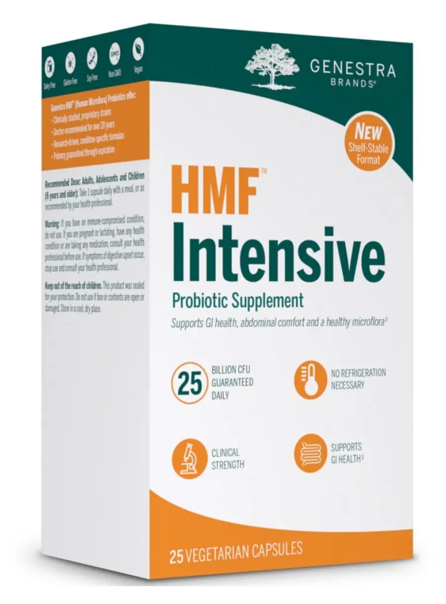 HMF Intensive is a clinically studied probiotic supplement designed to support digestive health and overall well-being. With a proprietary blend of strains, this product has been doctor-recommended for over 20 years, ensuring quality and efficacy. Each vegetarian capsule delivers a potent dose of beneficial bacteria, making it suitable for adults, adolescents, and children aged 6 and older.