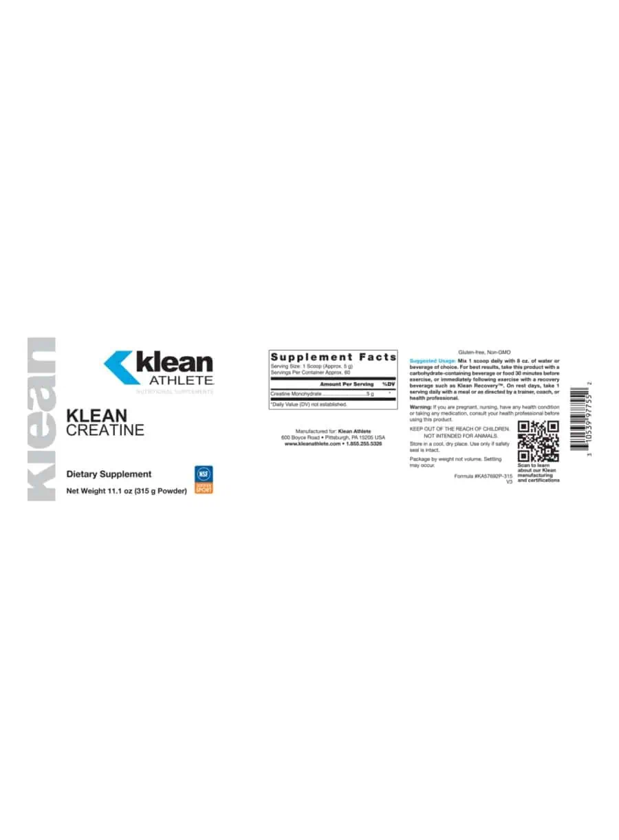 Klean Creatine by Klean Athlete is a powdered creatine monohydrate designed to support athletes who need to perform at their best during high-intensity workouts. Creatine is a vital energy carrier that ensures ATP availability during short bursts of anaerobic or dynamic exercise, making it essential for achieving strength and power objectives. With 5 g of pure creatine monohydrate per serving, Klean Creatine aids in muscle protein synthesis, facilitating gains in muscle strength, power, and size.